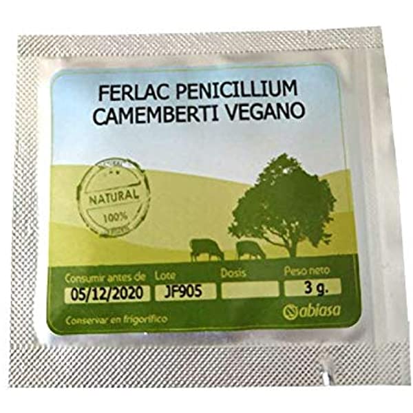 Como fermentos he utilizado los mismos que para mi yogurt de soja casero, el acidophilus 40 plus de Solgar. Y el penicillium camemberti (el moho) lo he comprado en la web de cocinista, que por cierto tienen mil cosas súper interesantes para los amantes de la cocina. Sobre todo fíjate que los cultivos sean veganos. También los puedes encontrar por internet en muchas tiendas de alimentación vegana.